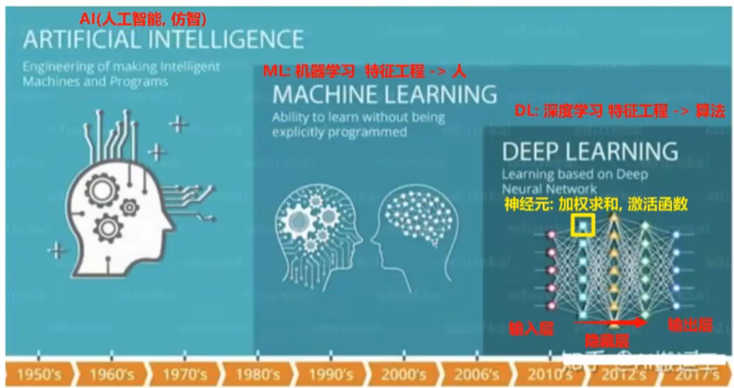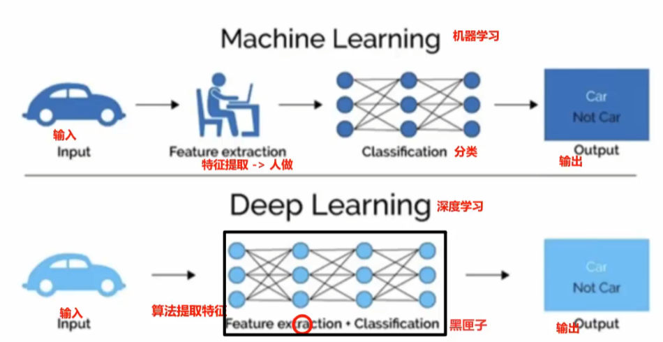 深度学习特点:1.深层非线性框架,每个神经元自行计算加权求和和激活 2.算法自动提取特征(机器学习人工提取特征) 3.依靠大数据和算力(要不86年ai就火了)4.可解释性差