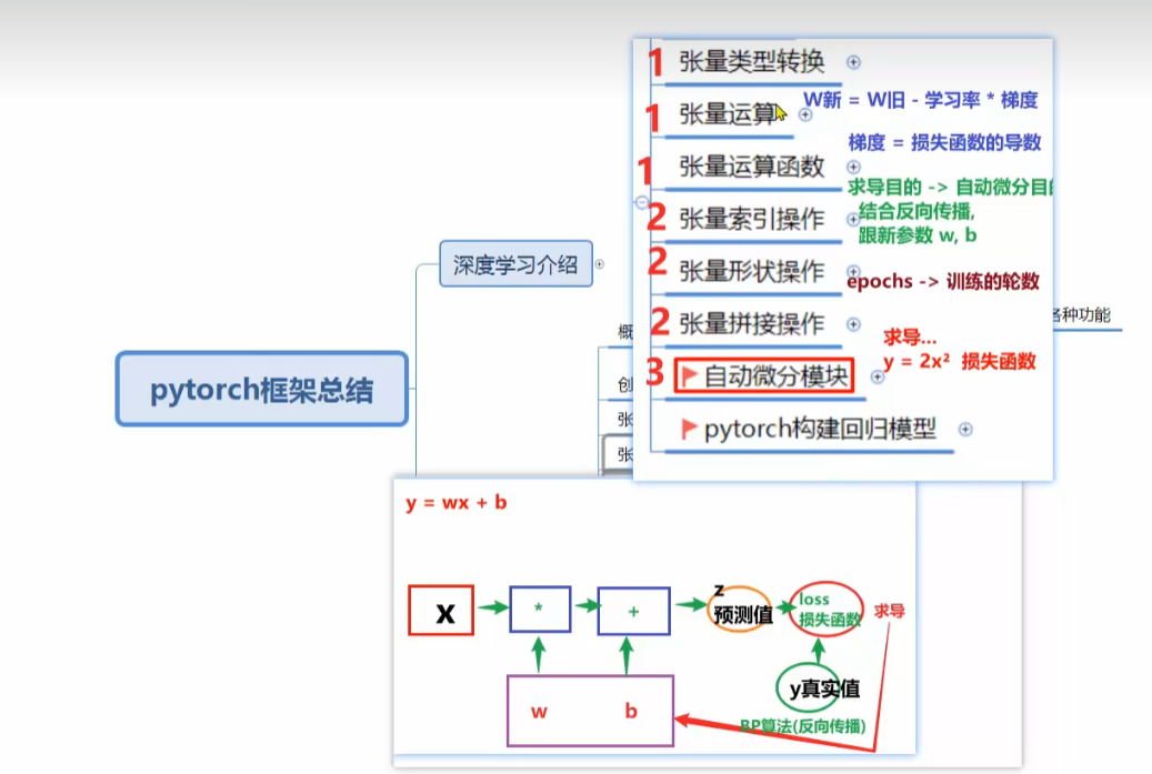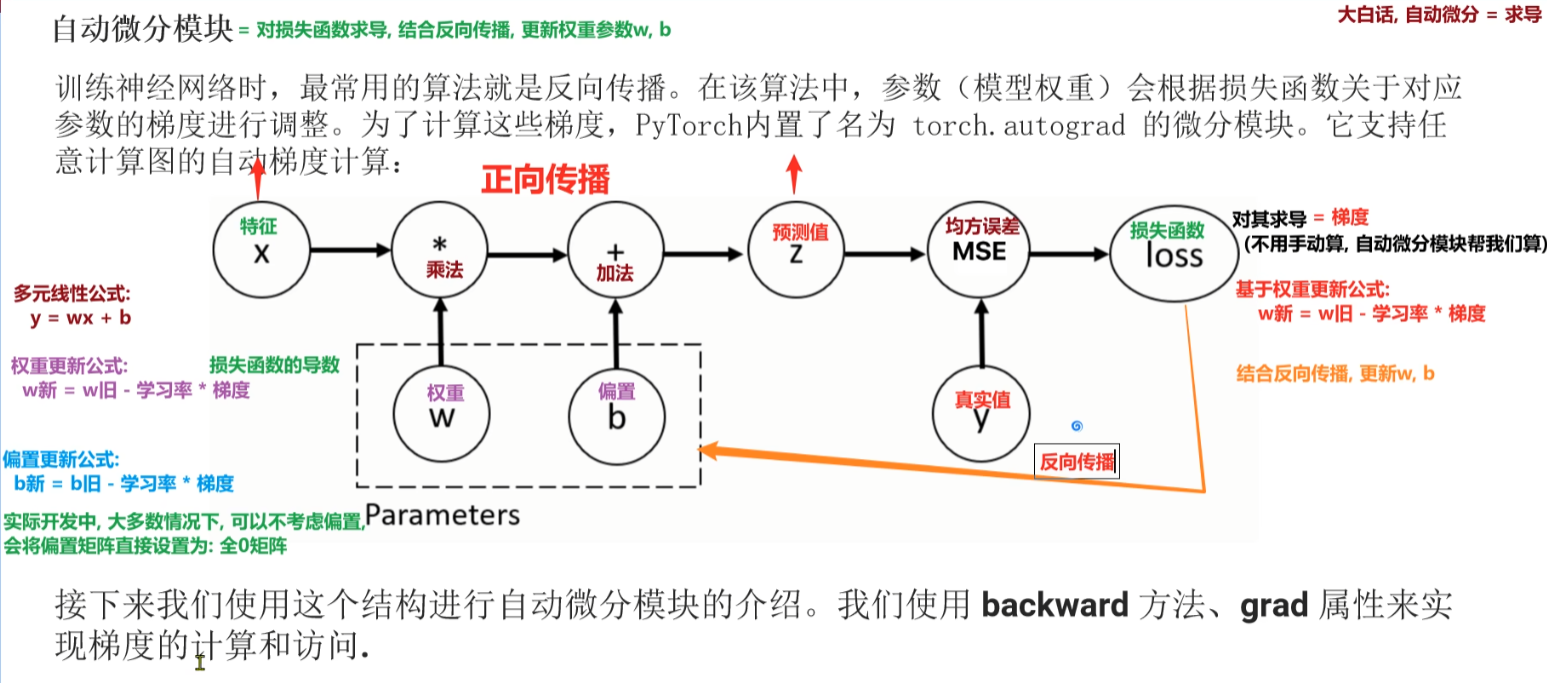 自动微分模块=对损失函数求导,结合反向传播,更新权重参数w,b